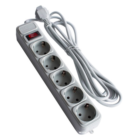 Пристрій з п'ятьма універсальними розетками із заземленням та довжиною кабелю 3 метри, виконаний у удароміцному пластиковому корпусі, має вбудований захист від перевантажень та короткого замикання, а також оснащений отвором для кріплення на стіні.