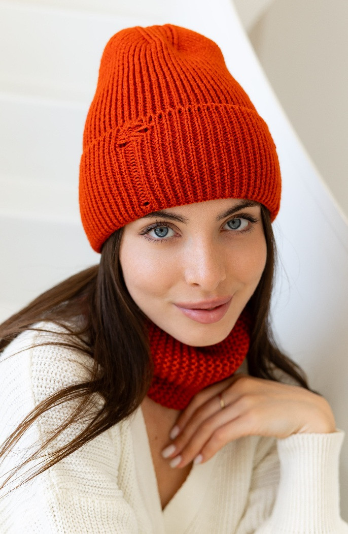 Жіноча в'язана шапка і хомут для холодної пори Помаранчевий, комфорт, стиль